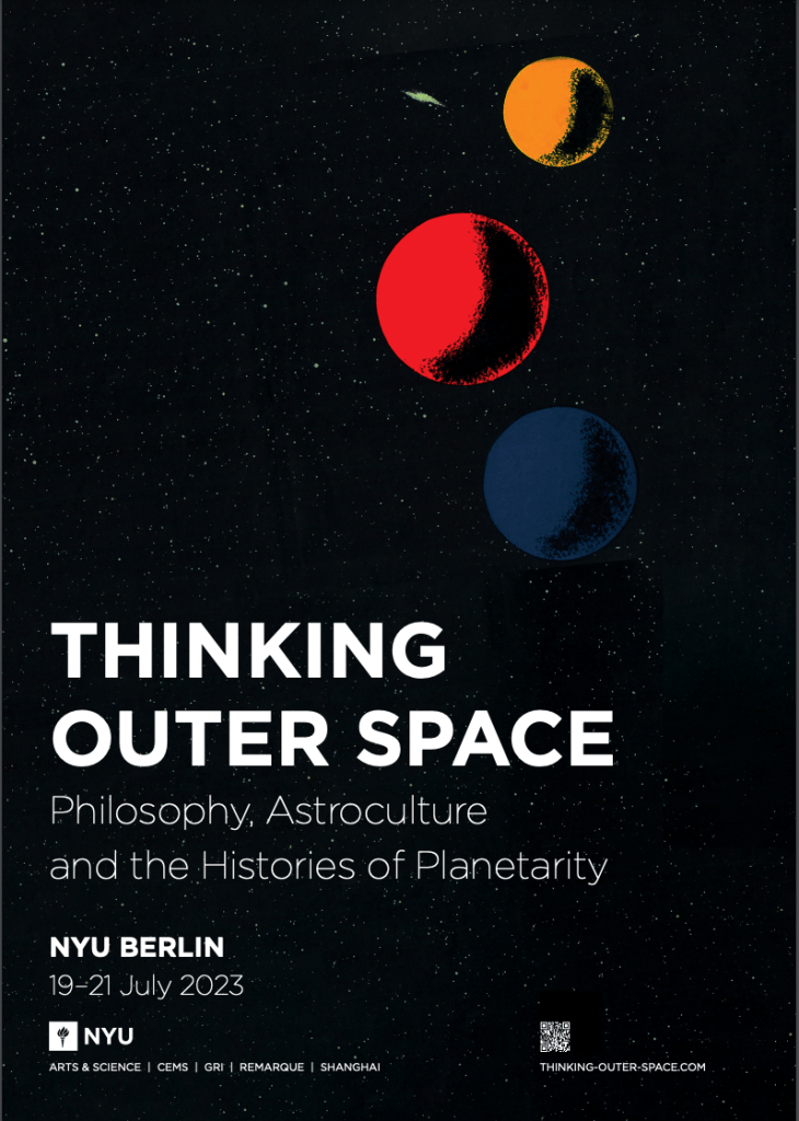 D. 19.-21. juli deltog jeg i konferencen Thinking Outer Space i Berlin. Konferencen var arrangeret af Alexander CT Geppert (New York University/NYU Shanghai og Rory Rowan (Trinity College Dublin) og handlede om det “planetariske” i det 20. århundredes historie, litteratur og filosofi.