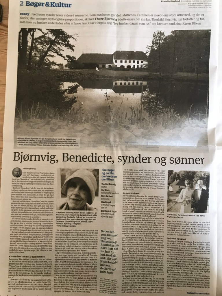 Samme dag som jeg havde en kronik i Information og der var reception for antologien Til Samsø, fik jeg også trykt et langt essay i Kristeligt Dagblad om Olav Hergels bog Jeg husker dagen som lys og min fars forhold til Hergels mor Benedicte – og hvad den historie gør ved mig i dag.